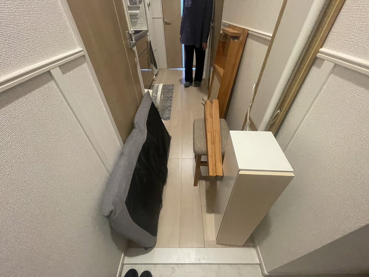 冷蔵庫と二つのタンスの処分です。冷蔵庫はもう古くなり機能が不安定に。タンスも引き出しが固くなり、家族が使いづらいと言うので処分を決断。とはいえ、それらを運び出すのは私の年齢では到底無理な話でした。そこで、息子が調べて見つけてくれたKADODEさんにお願いすることに。 事前の相談時から丁寧に対応してくださり、こちらの希望や不安をきちんと聞いてもらえました。当日もスタッフの皆さんが見事なチームワークで冷蔵庫とタンスをすぐに運び出してくれて、本当にあっという間に片付きました。 特に大きな冷蔵庫を運び出す作業は感心しました。狭い入口でも全く動じることなく、的確な手順で搬出。タンスの扱いも慎重で、他の家具や壁に傷をつけることなく進めてくれました。その様子を見ているだけで安心してお任せできました。
