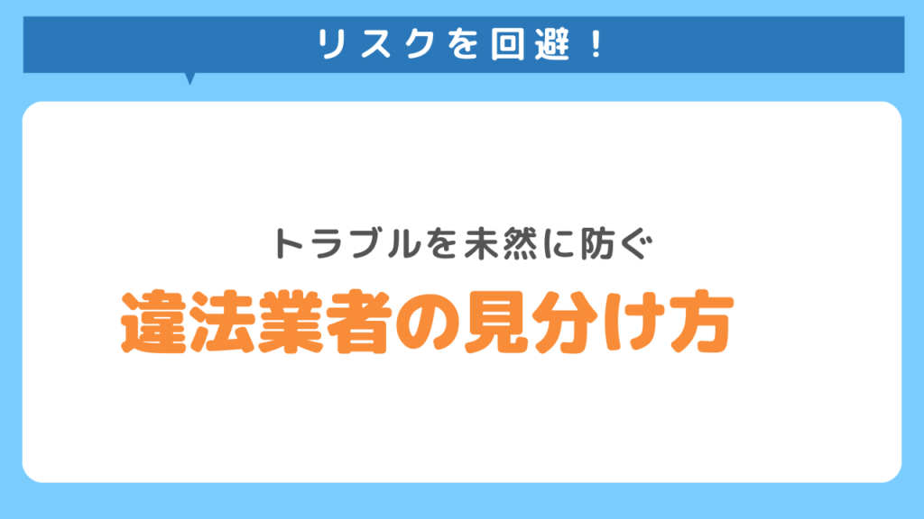 さいたま市で信頼できる業者を選ぶためには、まずは違法業者を見極めることが重要です。以下では、違法業者を避けるための3つのポイントを紹介します。