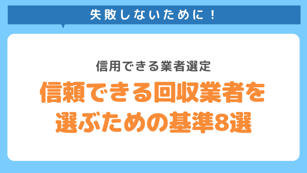 ここからは、さいたま市で不用品回収業者を選ぶ際のチェックポイント8選を紹介します。