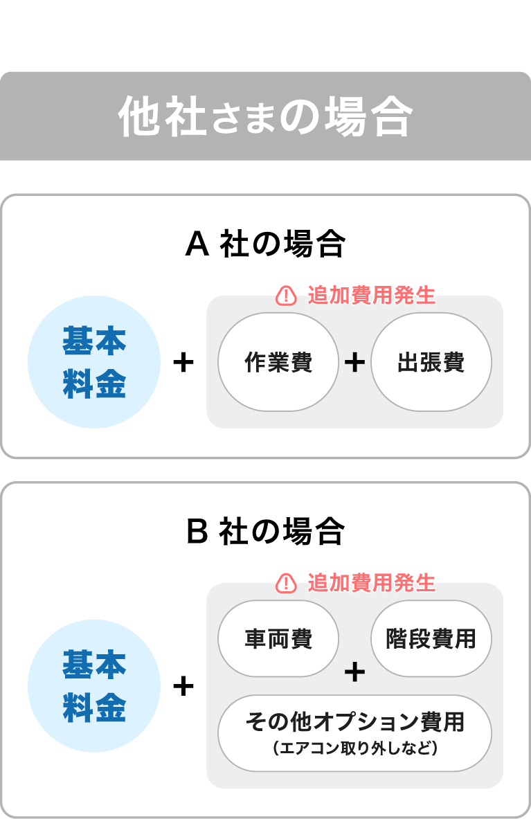 通常想定される作業から逸脱する場合は、追加料金の請求を行うことがございます。 詳しくはお問い合わせください。