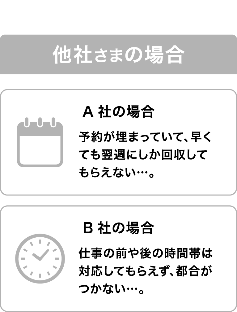 その反面、回収を急ぐ場合や不用品の種類が多い場合は、民間の不用品回収業者が便利です。